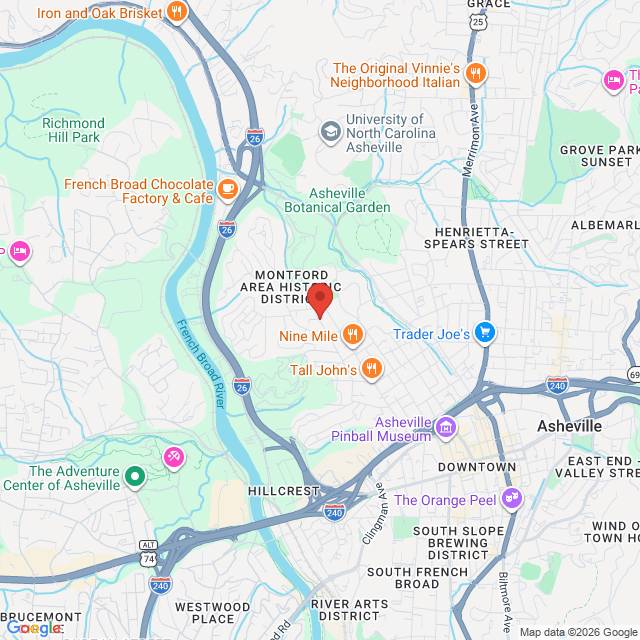 In Montford Neighborhood. From 240 take Exit 4C to Montoford Ave. for 0.7 mi. Turn on Watagua.